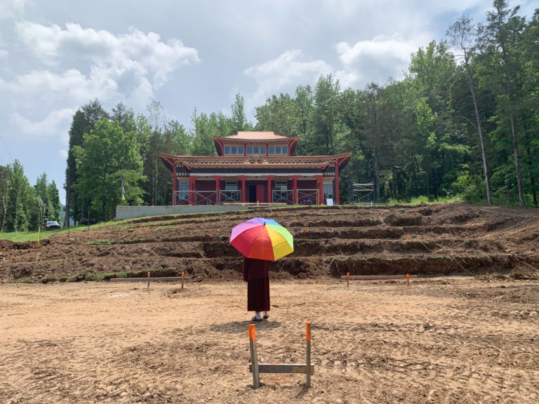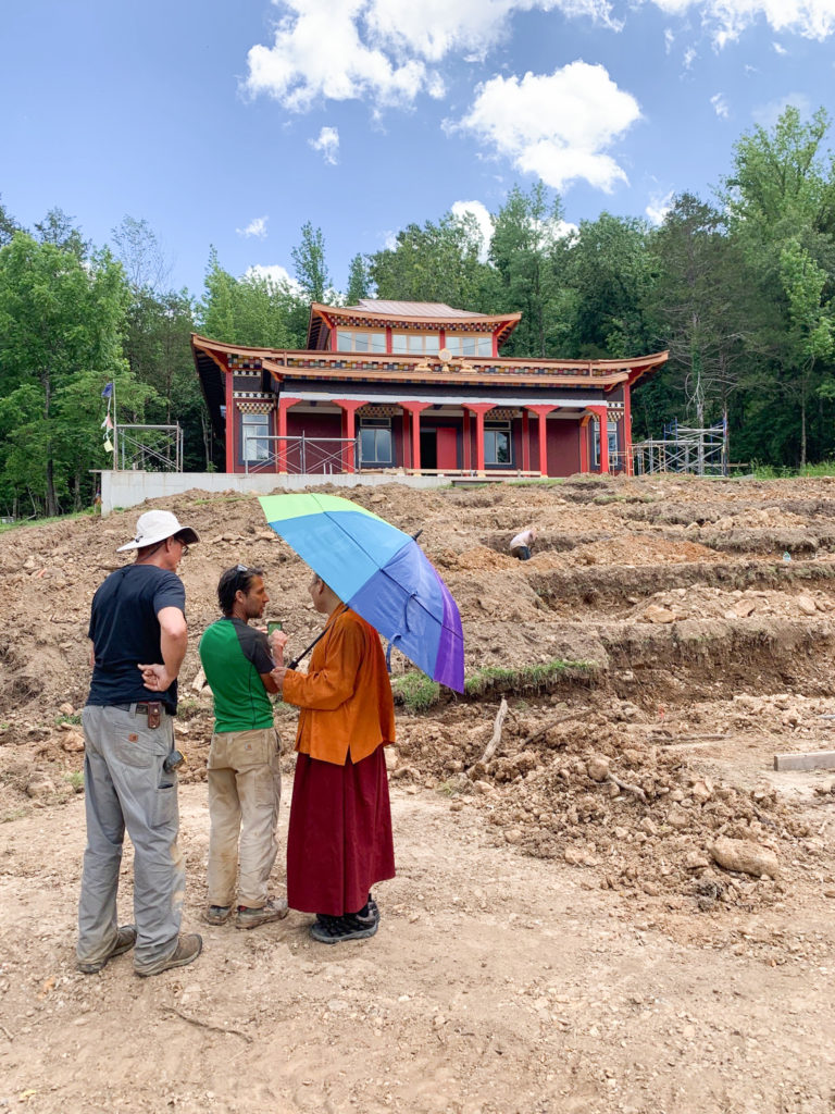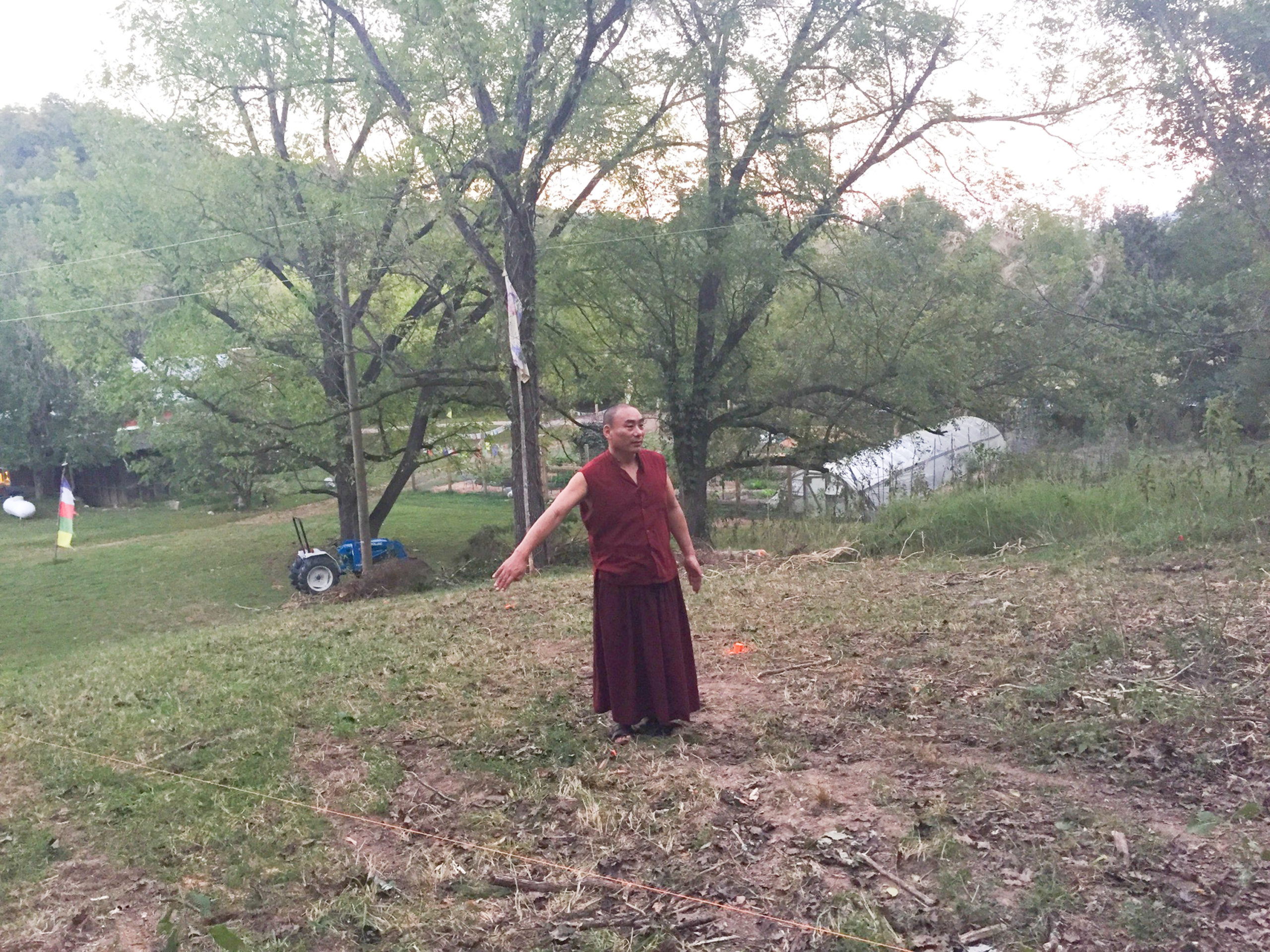 My intentions and aspirations for the land are: to build a temple and establish representations of enlightened body, speech, and mind, such as statues and images that serve as a support for practice; to develop courses for studying Buddhist philosophy in a traditional manner, called a shedra; to initiate a three-year retreat center, called a drubdra; and to establish an area designated for meditation retreats of varying lengths, called a gomdra. This work is already underway and continues.
