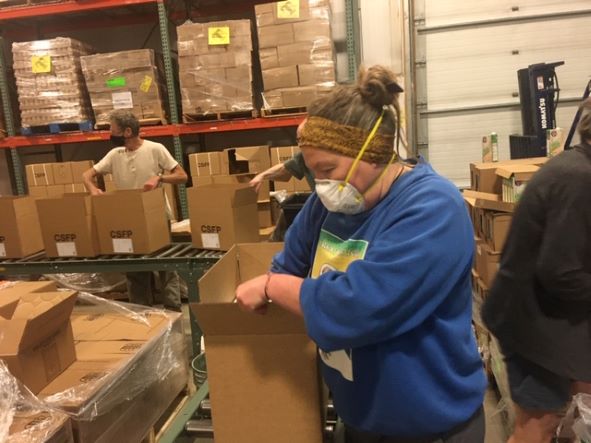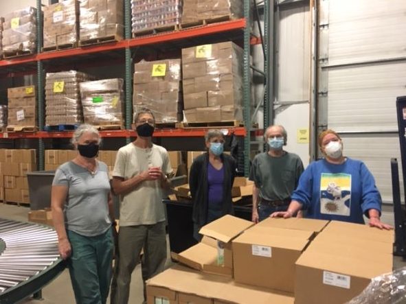 Sangha members packed over 200 boxes of food to be distributed to families in need around Alaska.