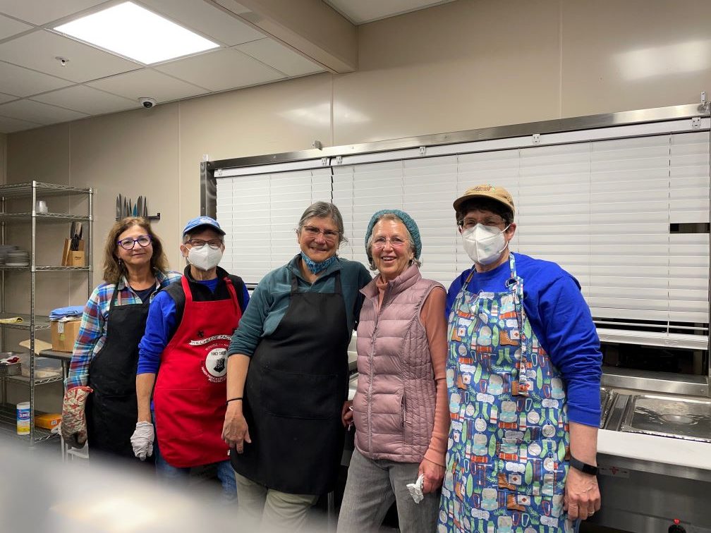Sangha members joined with Jewish and Baha’i community members to prepare dinner for over 75 individuals at the emergency shelter and soup kitchen.