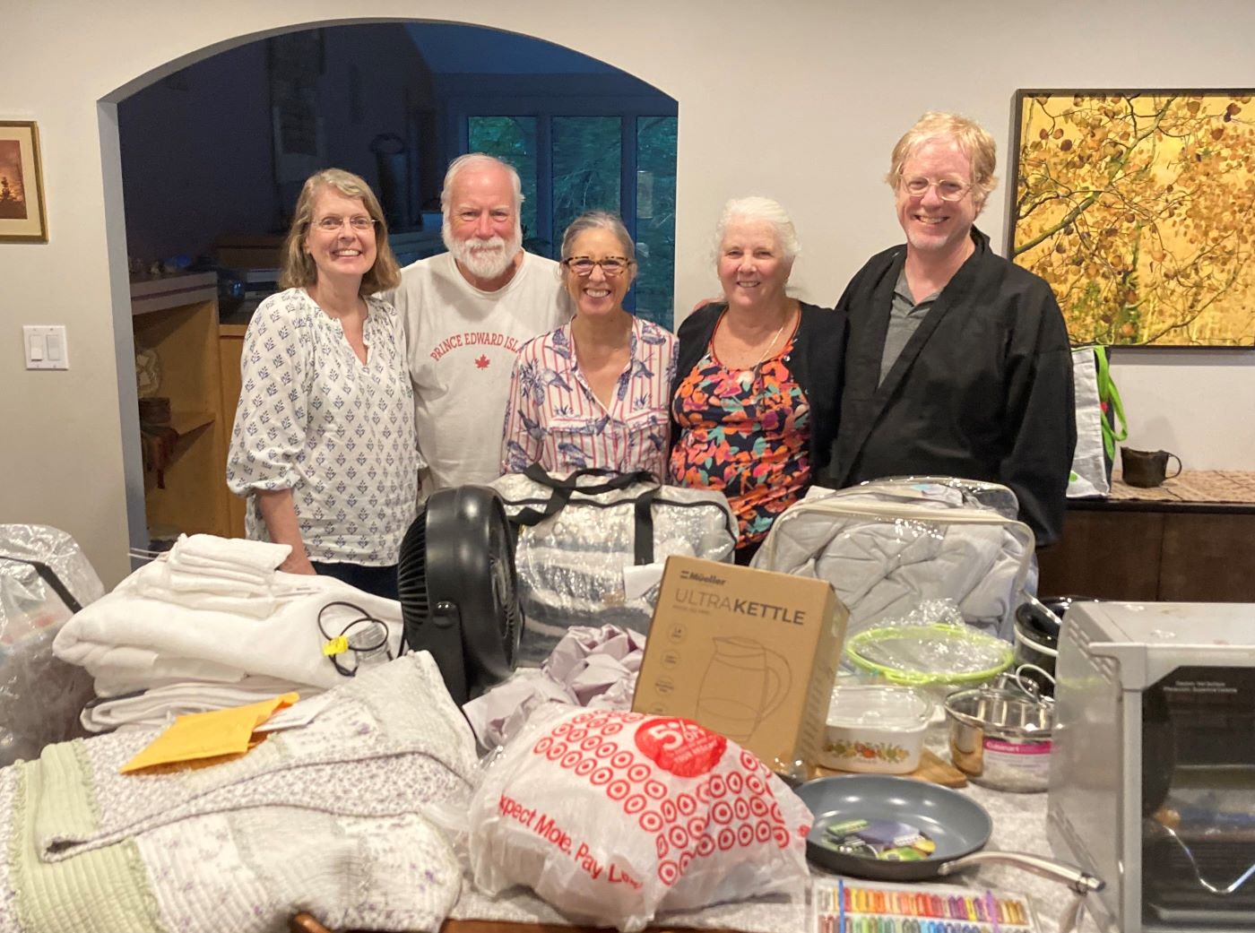 Household items were gathered for a single Ukrainian mother with two children who moved into a local apartment. We collected new and gently used household items (sheets, towels, quilt, comforters, electric kettle, colander, pots and pans, casserole and storage dishes, crockpot, rotisseries, glasses, cutting board, toys, etc.) plus $1000 in gift cards for groceries and clothes.