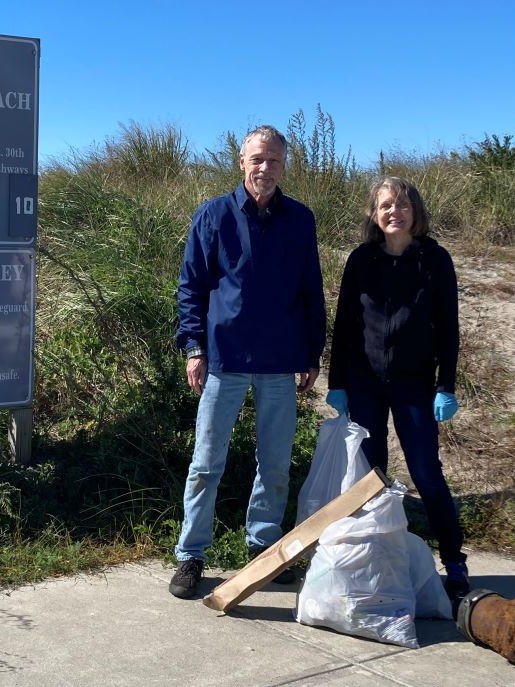 Sangha members volunteered with Save the Sound environmental protection organization and collected trash from the beach and sand dunes at Hammonasset State Beach in Connecticut.